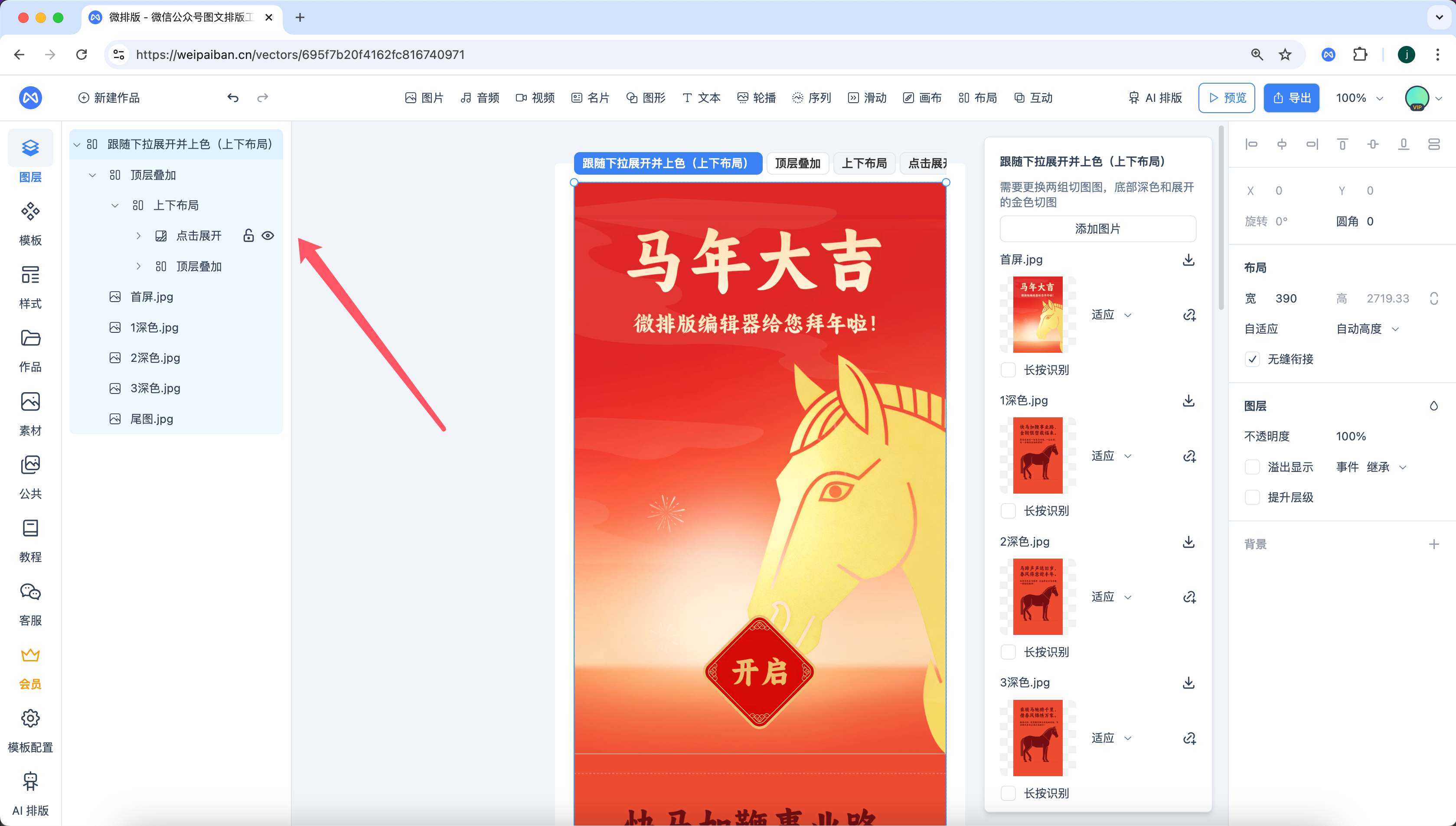 非模板化创作: 这意味着你不再是“填空”,而是在“创作”。你可以自定义元素的重叠、对齐和层级关系,实现极具视觉冲击力的海报式排版。