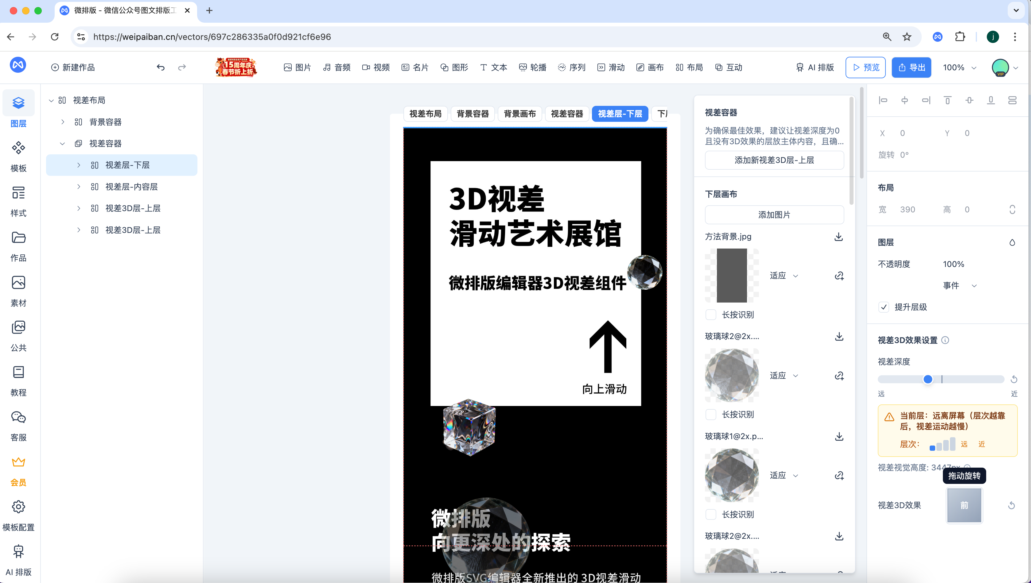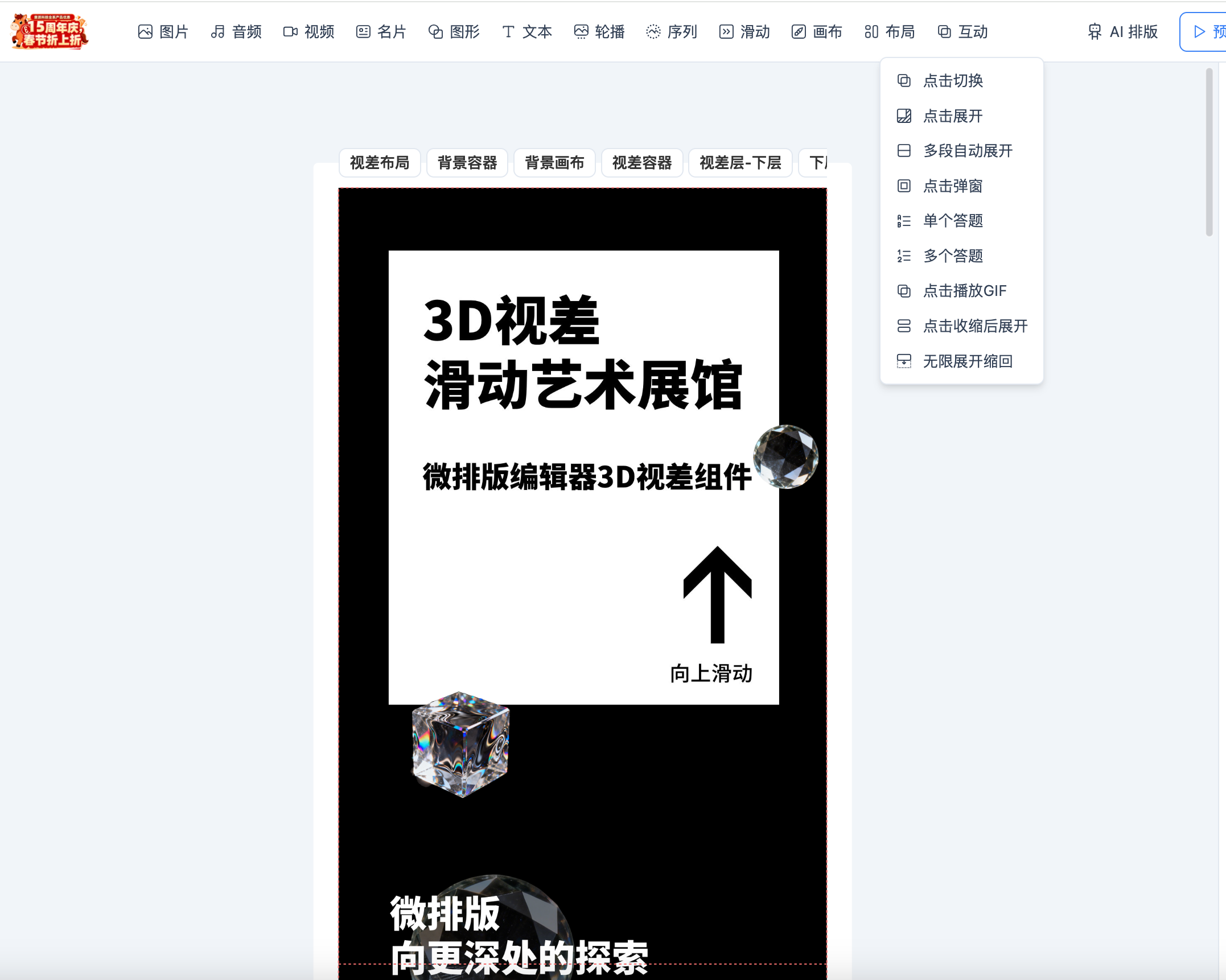 微排版编辑器3D视差滑动组件编辑界面