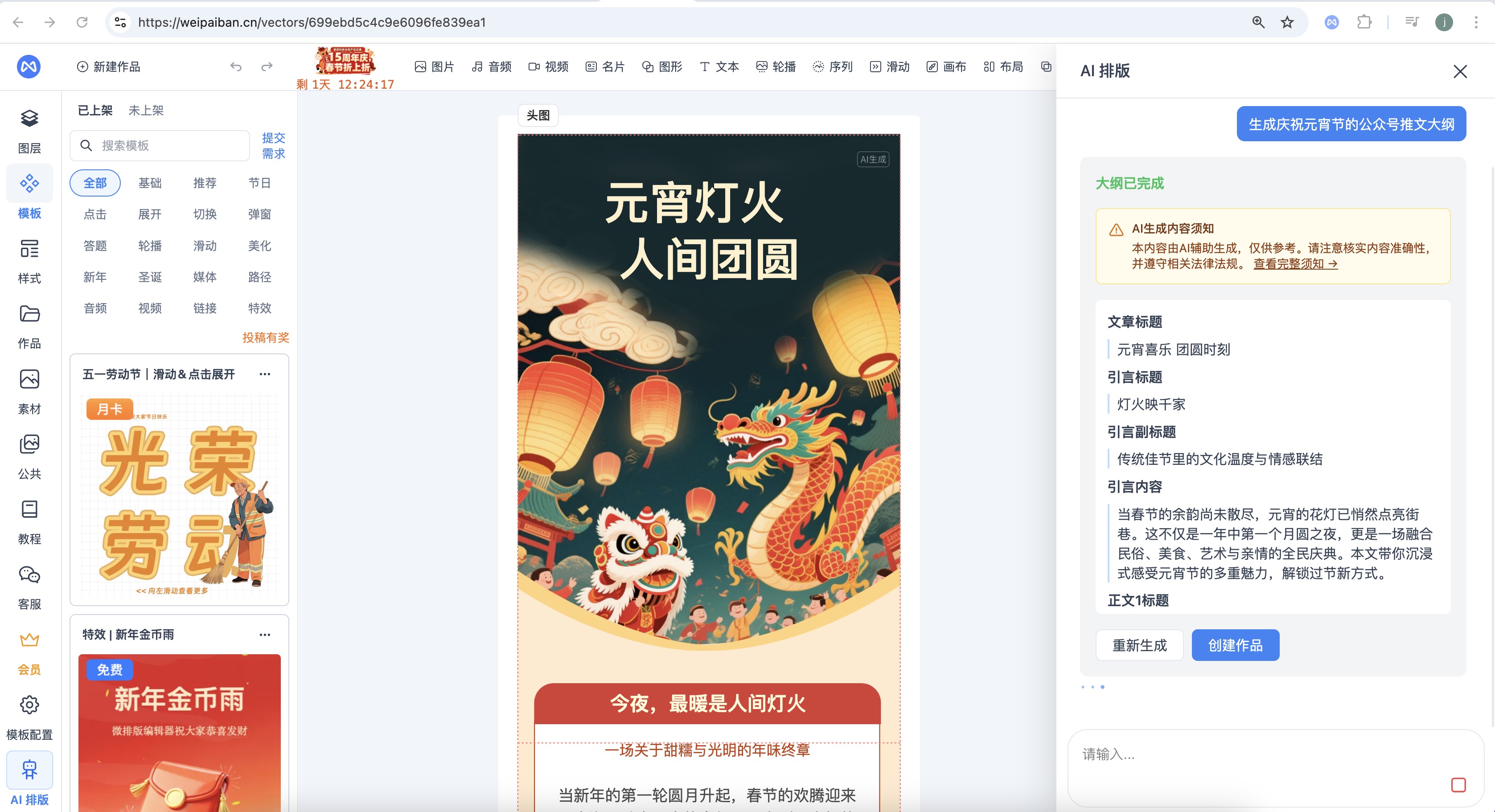 打破传统模块式排版的束缚,微排版编辑器的可视化画布自由编辑功能,支持元素任意拖拽、叠加,适配各类个性化排版需求,以下实际案例直观体现其灵活性:
